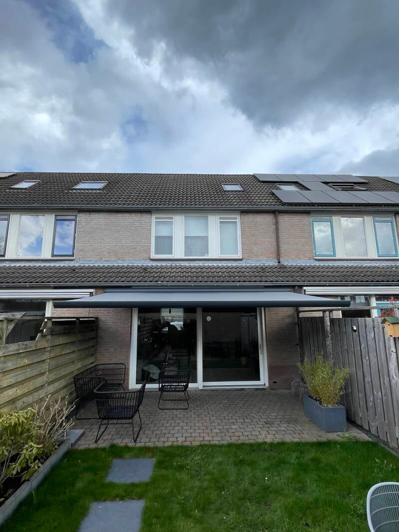 Wij hebben weer een prachtig scherm geleverd en gemonteerd, deze hebben wij chemisch in de vloer kunnen monteren waardoor er geen kans bestaat dat de muur word beschadigd zoals Het vorige scherm heeft gedaan, naast de zonwerende functie van een knikarmscherm levert deze ook extra wooncomfort op doordat u dankzij een knikarmscherm uw woonkamer verlengd op uw terras van uw tuin.